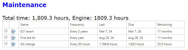Keep track of all maintenance items. Items can be based on airtime, time periods or calendar times.